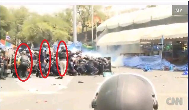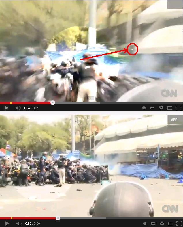 เพราะมีตำรวจ(ผู้กล้า)พยายามเตะออกไป แสดงว่าเห็นวัตถุนั้น คลิปครับ http://www.youtube.com/watch?v=Etmy_aDbxGA