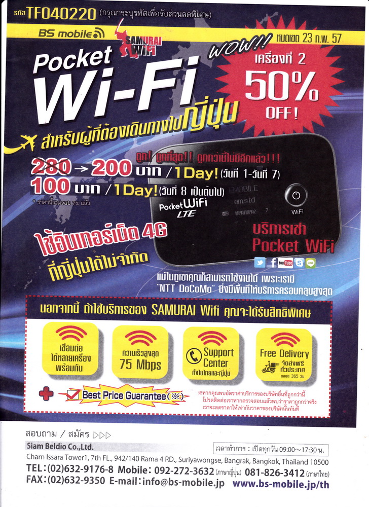 เอาโบรชัวร์มาฝากนะครับ เมื่อวานไปเดินงาน “เที่ยวทั่วไทย ไปทั่วโลก ครั้งที่ 14” 20-23 กุมภาพันธ์ 57 ที่ศูนย์ประชุมแห่งชาติสิริกิติ์ เอาไว้เป็นแนวทางตัดสินใจว่าจะไปเดินงานเสาร์อาทิตย์นี้ดีหรือเปล่าแต่ถ้าใครที่กำลังจะไปญี่ปุ่นแล้วต้องการข้อมูลงานนี้ไม่ควรพลาดครับ เพราะการท่องเที่ยวญี่ปุ่นขนบูธมาเปิดเต็มพิกัดพร้อมให้ข้อมูลเต็มที่ และยังมีการท่องเที่ยวมาเลเชีย เกาหลี ฮ่องกง มาเก๊า หรือ ใครที่ต้องการหาทัวร์ช่วงไปเที่ยวช่วง มี.ค. เม.ษ. พ.ค. ก็ไม่ควรพลาดเช่นกันมากันพรึ่บหลายเจ้าดัง สายการบินก็มากันหลายเจ้าเช่น Bangkok Airway , Air Asia , Nok Air , Cathay Pacific , Jet Star Asia เจ้านี้คนต่อคิวกันเยอะเพราะพี่ท่านปล่อยราคาบินตรง กทม.-ฟูกุโอกะ ได้ถึงใจชาวไทยเป็นอย่างมาก งานนี้เครื่องเล็กก็ยอมนั่งกันเลย ฝั่ง Low Cost เกาหลีก็มากันทั้ง T'Way JeJu Air ครับ ส่วนที่พัก แพคเกจในไทยมากันพอสมคร แต่ถ้าเน้นในไทย รองานไทยเที่ยวไทย 27ก.พ.-2มี.ค ดีกว่าครับ