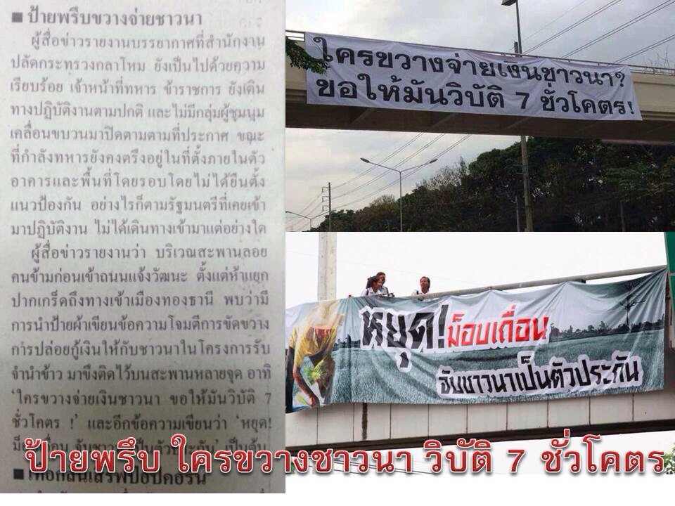 สื่อเผยแพร่ "ชาวกรุงเทพขึ้นป้ายใครขวางจ่ายเงินจำนำข้าวชาวนาขอให้วิบัติ 7 ชั่วโคตร"