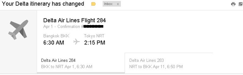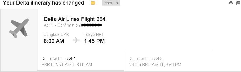มีใครบิน Delta แล้วได้เมล์แจ้งเตือนเรื่องเลื่อนเวลาบ้างไหมคะ?