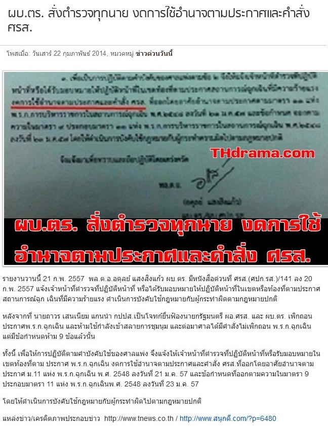 ผบ.ตร. สั่งตำรวจทุกนาย งดการใช้อำนาจตามประกาศและคำสั่ง ศรส.