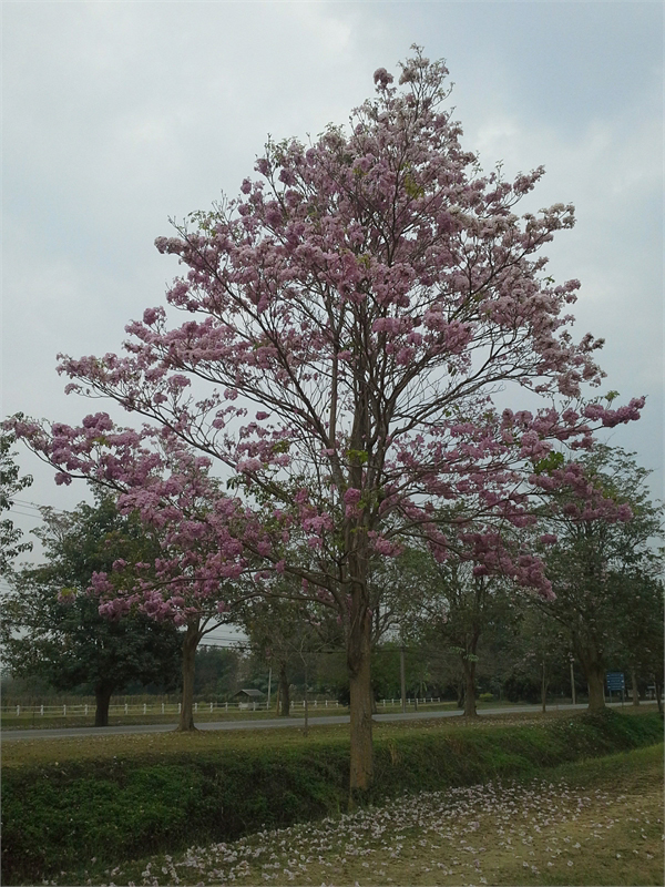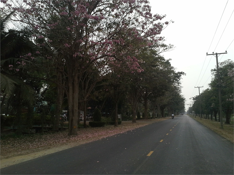 แต่ถนนหลัง ม. ออกดอกแล้ว ยานเต็มที่แค่บางต้น ยังออกดอกไม่พร้อมกันทุกต้น