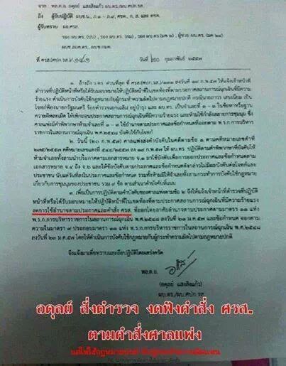 อดุลย์ ส่งหนังสือถึงลูกน้องให้ฟังคำสั่งศาบ และห้ามรับคำสั่งสลายม๊อบของศรส