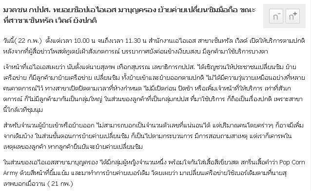 มวลชน กปปส ทยอยเปลี่ยนซิมเอไอเอส มาบุญครอง ย้ายค่ายเปลี่ยนซิมมือถือ ขณะที่สาขาเซ็นทรัล เวิลด์ ยังปกติ