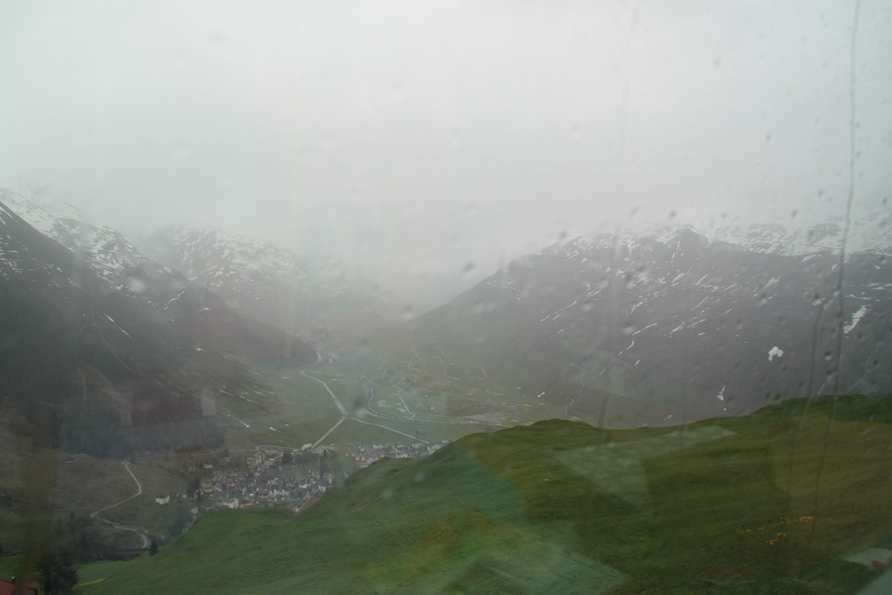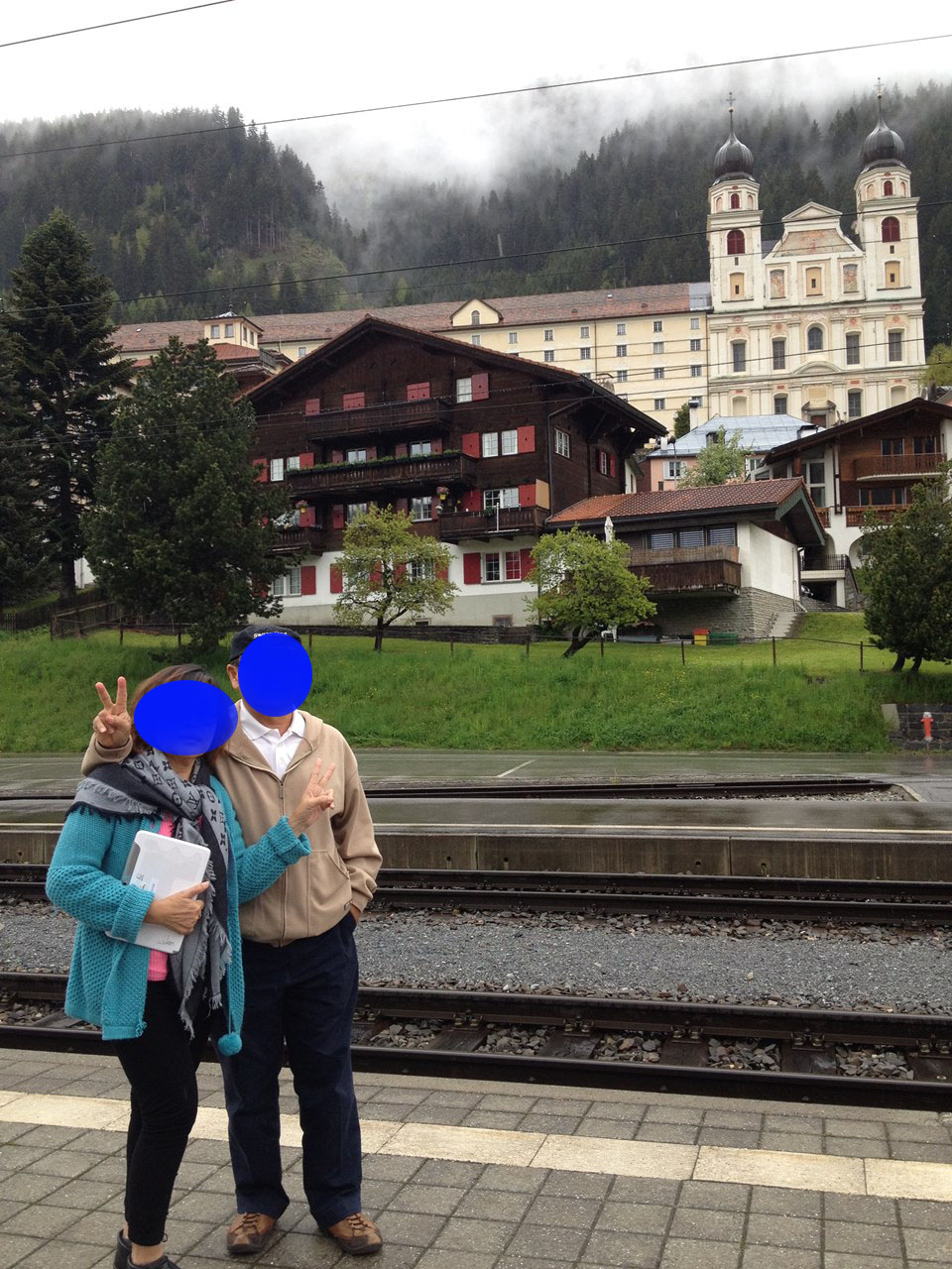 เมื่อเราไปถึง Visp ปรากฎว่าฝนตกครับ ทำให้อากาศหนาวมาก ต้องไปหลบความหนาวกันในสถานีรถไฟ พร้อมทั้งตุนเสบียงขึ้นไปทานบนรถไฟกัน (คิดในแง่ดี จะว่าโชคดีก็ได้นะครับที่ฝนมาตกวันนั้น เพราะเป็นวันที่นั่งรถไฟทั้งวัน) ตอนที่เราไปถือว่าโชคดีมาก เพราะคนไม่ค่อยมี ตอนแรกทั้งตู้มีแต่คณะผม 6 คน พนักงานเลยให้ที่นั่งเพิ่มคือเกือบครึ่งคัน คือประมาณ 12 ที่นั่ง