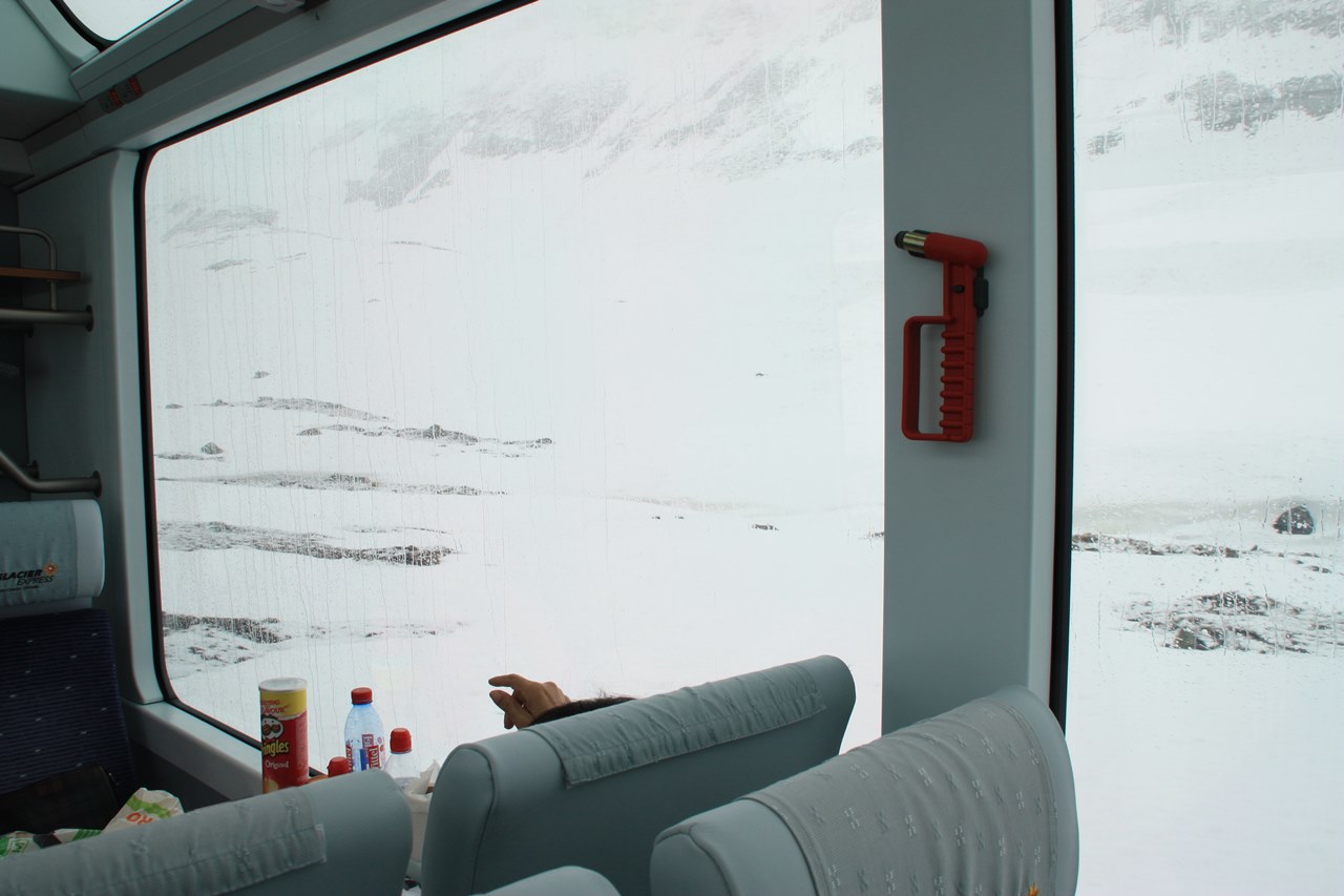 ภายในรถไฟสายธารน้ำแข็ง จะเป็นกระจกแบบ Panoramic View เมื่อก่อนเค้าว่าเปิดได้ด้วย แต่ตอนที่ผมไปเปิดไม่ได้แล้ว