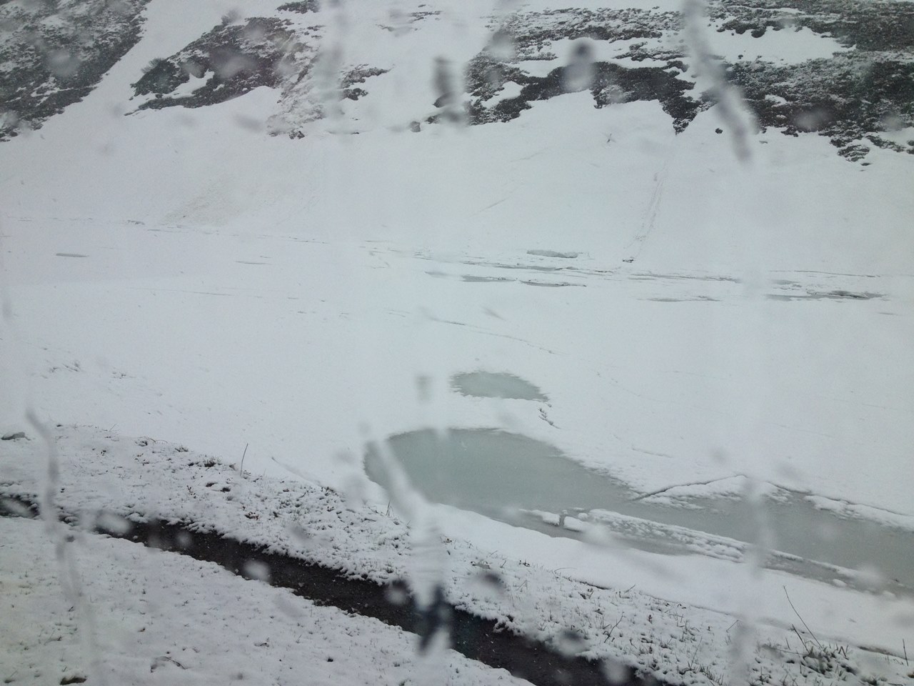 ไต่ขึ้นไปอยู่บนเขาที่มีแต่หิมะ บางช่วงมีธารน้ำแข็งที่ไม่ใหญ่มากนัก ตลอดทาง