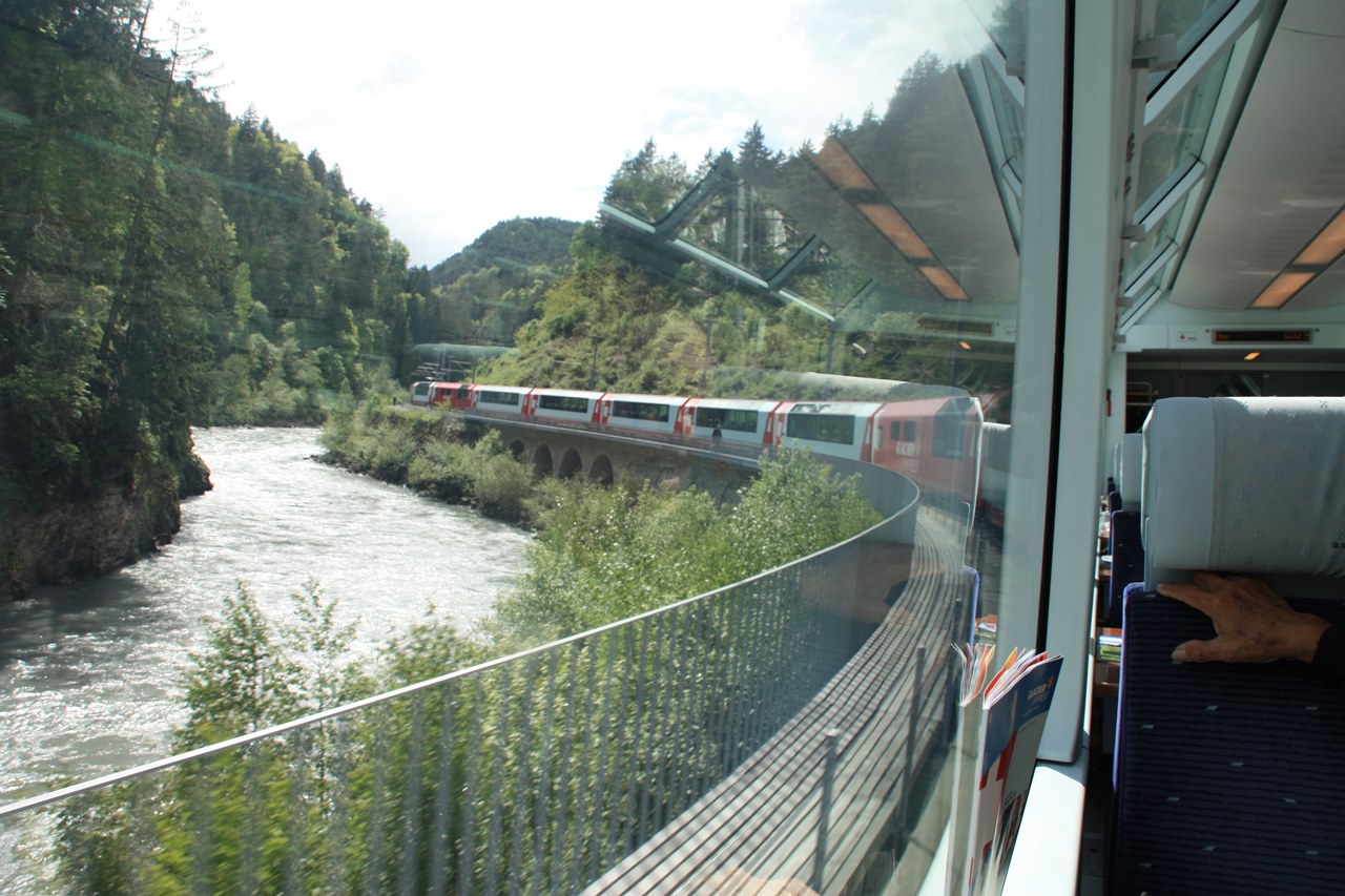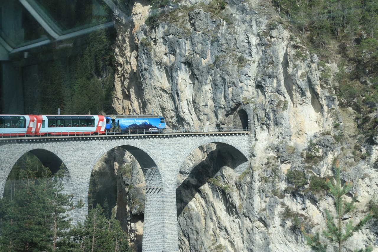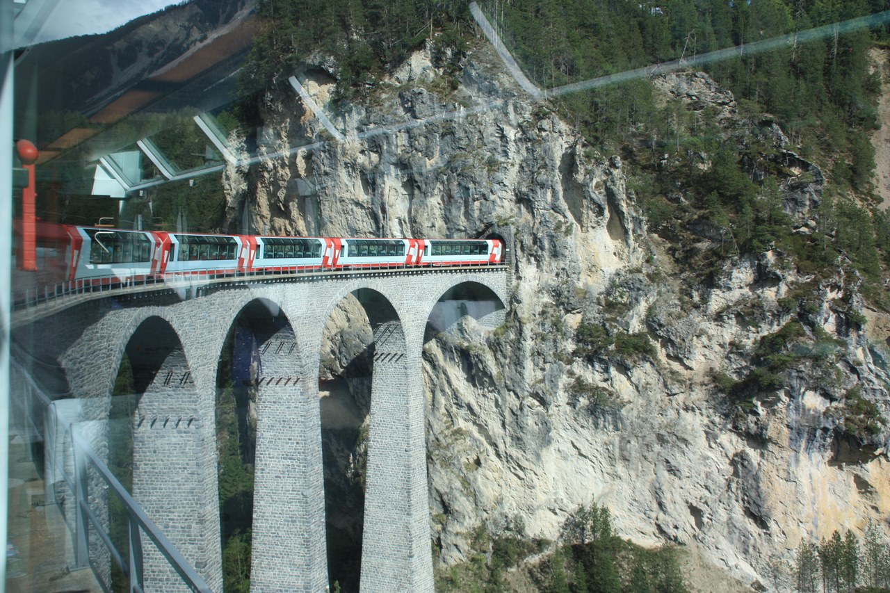 **แนะนำให้นั่งมาจาก Visp ให้นั่งขบวนหน้าๆนะครับ เพราะถึง Chur แล้วรถไฟจะเปลี่ยนเป็นขบวนหลัง เราจะเห็นรถไฟข้ามสะพาน Landwasser เข้าอุโมงค์ไป ถือเป็นไฮไลท์ของรถไฟสายนี้ครับ