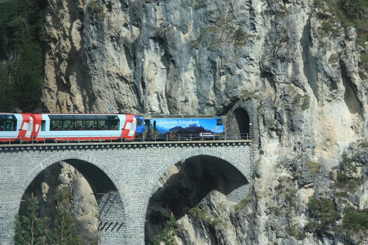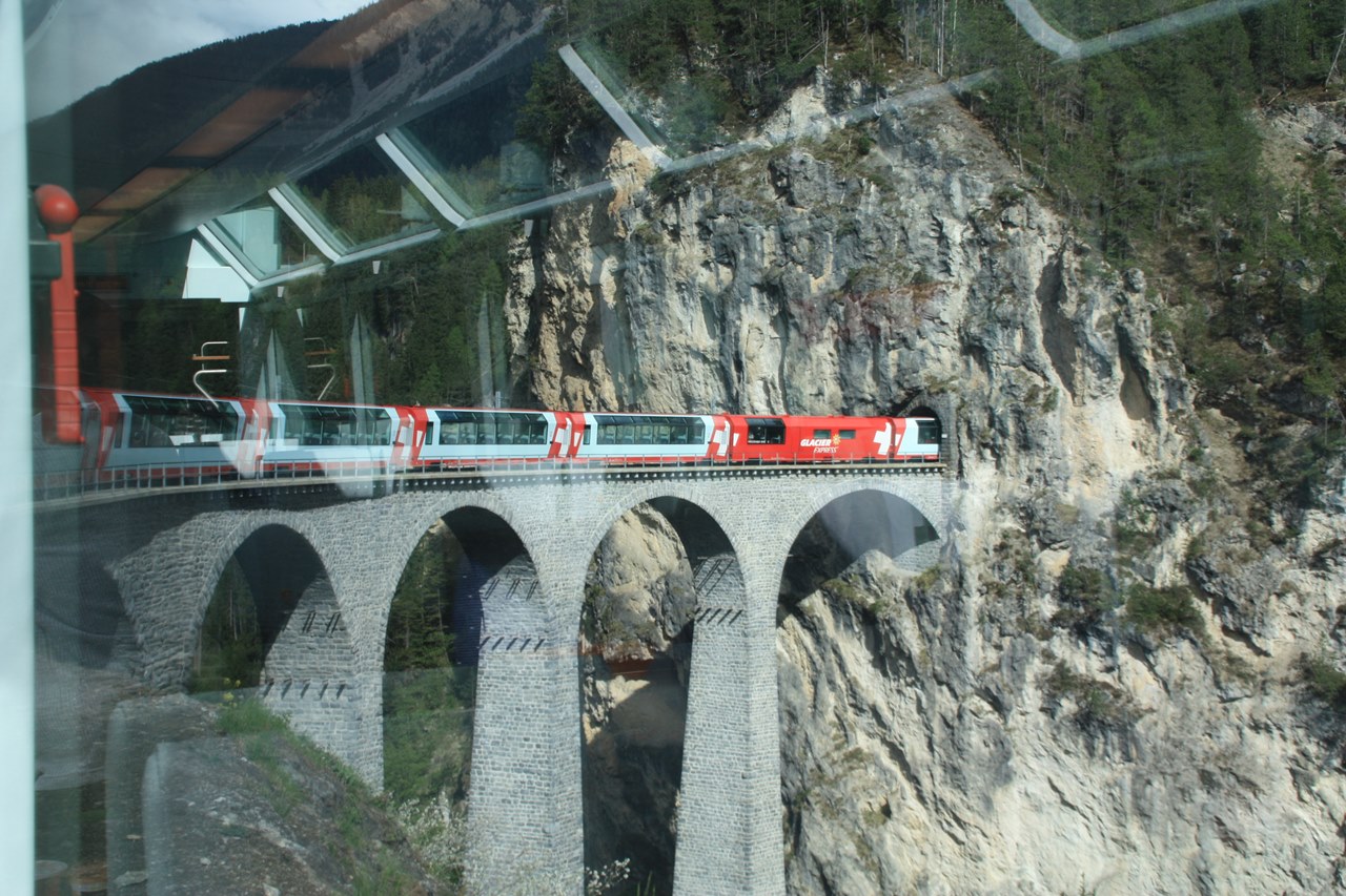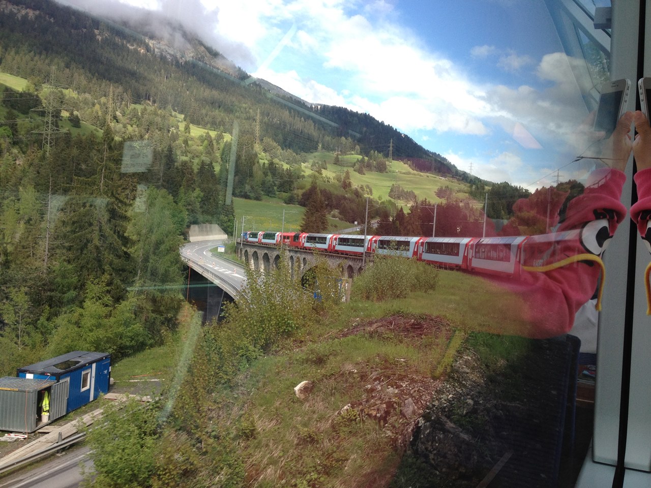 **แนะนำให้นั่งมาจาก Visp ให้นั่งขบวนหน้าๆนะครับ เพราะถึง Chur แล้วรถไฟจะเปลี่ยนเป็นขบวนหลัง เราจะเห็นรถไฟข้ามสะพาน Landwasser เข้าอุโมงค์ไป ถือเป็นไฮไลท์ของรถไฟสายนี้ครับ