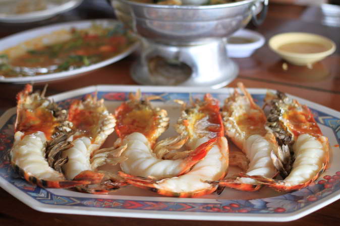 [CR] กุ้งเผาแสนอร่อย กก.ละ1,400 บาท จัมโบ้ กก.ละ 2ตัว ขนาดย่อม กก.ละ 1,200 บาท 3ตัว อื่นๆ ปลาน้ำเงินฉู่ฉี่ ต้มยำกุ้ง ข้าวผัด