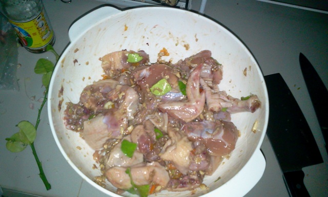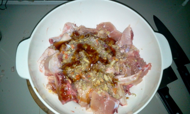 ไก่ 1 ตัว รึใครจะใช้แบบชิ้นๆสะโพกล้วน ปีกล้วนก็ไม่ผิดครับ ไก่บ้าน ไก่พันธุ์ตามชอบ ผมใช้ไก่พันธุ์เพราะมันนุ่มกว่า