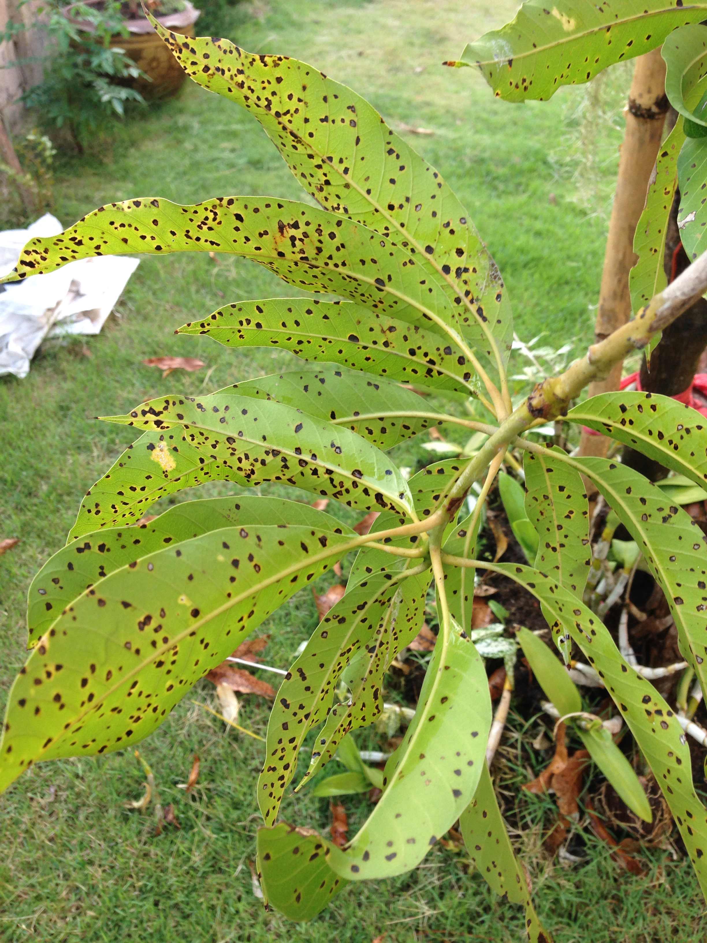มะม่วงศาลายา พึ่งลงปลูกได้ 3-4เดือน ยังไม่สูงท่วมหัว อยูดีๆก็ใบเป็นจุดๆครับ คาดว่าจะติดจากต้นของข้างๆบ้านครับ(เห็นต้นเค้าใบดำๆมาก่อนบ้านเรา ปลูกห่างกันไม่ถึง3เมตร) เป็นจุดดำๆไม่สวยงามเอาซะเลย แต่ก็ยัง