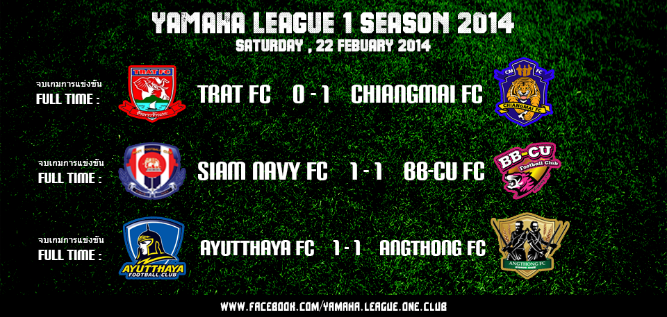 ผลฟุตบอลYamaha League.1 นัดแรก(22/2/2557)