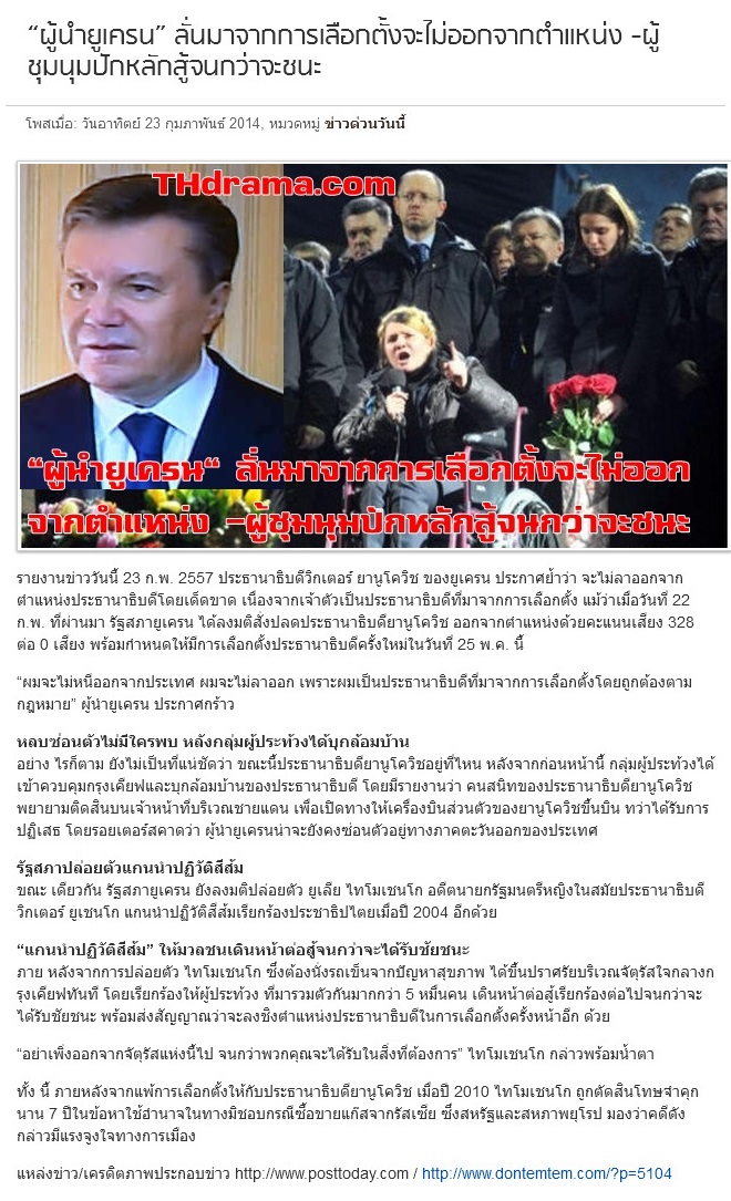 http://www.manager.co.th/Home/ViewNews.aspx?NewsID=9570000012250 ประธานาธิบดี วิกตอร์ ยานูโควิช เมื่อวันศุกร์(31) ลงนามบังคับใช้กฎหมายนิรโทษกรรมแก่นักเคลื่อนไหวฝ่านค้านที่ถูกจำคุกแล้ว เช่นเดียวกับล้มเ