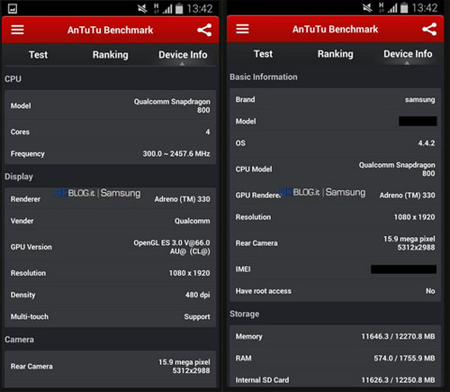 ภาพหลุดผลทดสอบ Samsung Galaxy S5 โชว์สเปค