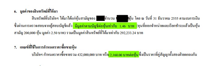 สอบถามคับ กรณีหนังสือชี้แจง ผมเข้าใจว่า บริษัทนี้เข้าซื้อกิจการที่มีมูลค่า(ทางบัญชี) 1.46 บาท ในราคา 2,160.00 บาทต่อหุ้นใช่หรือไม่ครับ