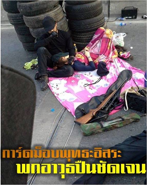 ปืนในรูปนี้คือปืนจริงหรือไม่ ดูแล้วไม่น่าใช่ภาพตัดต่อ ประเด็นคือ ปืนจริงหรือปืนปลอม หากเป็นปืนจริง น่าจะเป็นอาวุธสงคราม หมายเหตุ ผมอยากทราบจริงๆ หากเป็นการชักจูงไปในประเด็นการเมือง และมีการเสียดสีทาง