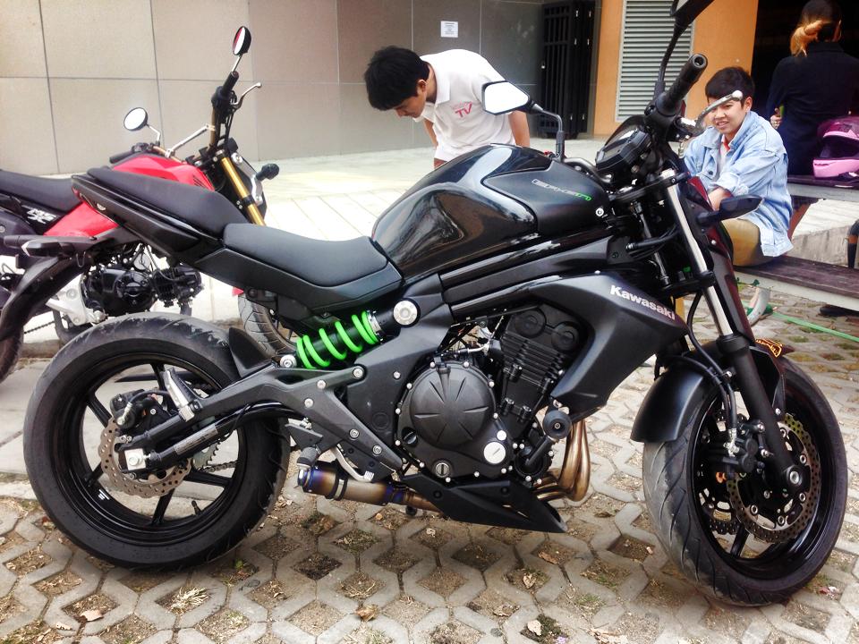 ผมกำลังจะมอเตอร์ไซค์มีครัทช์เป็นคันแรก เดิมขี่แต่รถออโต้ทุกวัน กำลังจะออกER6nแต่ไม่เคยขี่รถแบบมีครัทช์มาก่อนในชีวิต กลัวคุมรถไม่ไหว ใจจริงอยากจะออกแค่Z250SL แต่ผบทบ.มาเจอตัวER6n สีดำเฟรมแดง แล้วชอบมาก