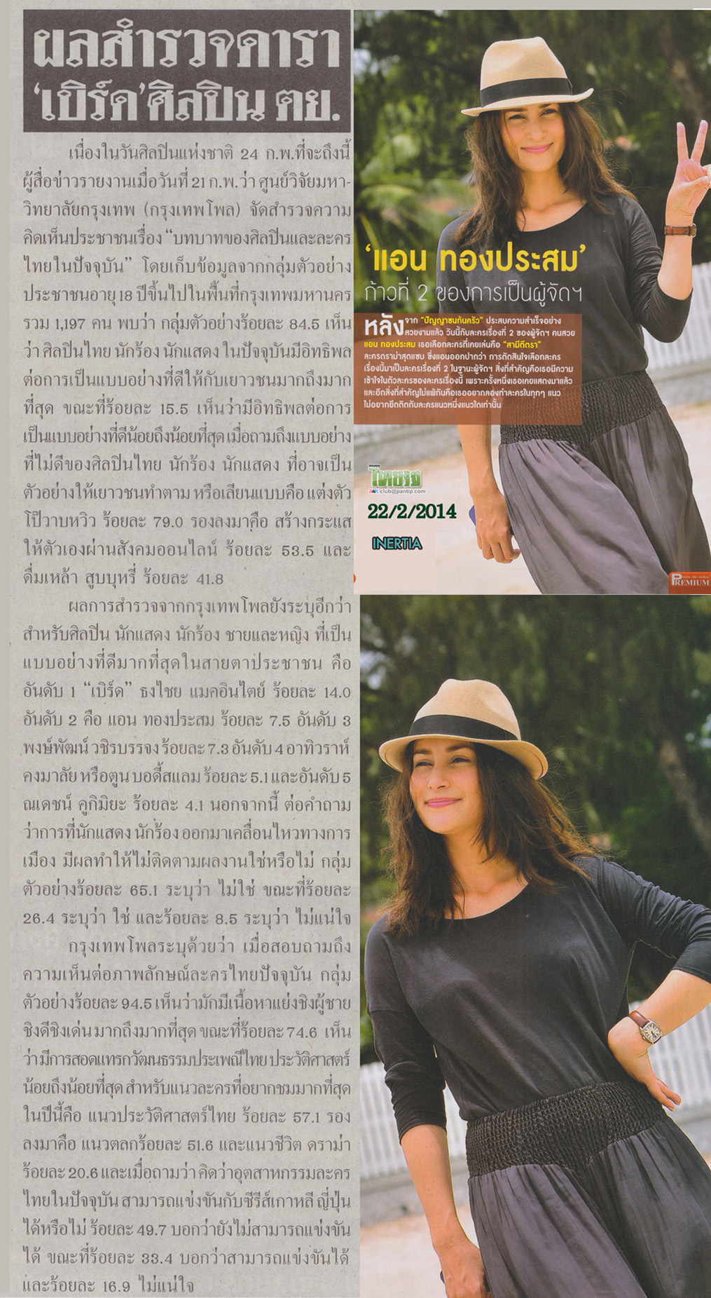 [กรุงเทพโพล] ผลสำรวจดารา ศิลปินตัวอย่าง #1 เบิร์ด ธงไชย แม็คอินไตย์#2 แอน ทองประสม