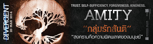 ศัตรู - กลุ่ม Candor เพราะกลุ่มนี้เน้นความซื่อสัตย์ ไม่โกหก ในขณะที่ Amity เชื่อว่าการโกหกเพื่อให้อีกฝ่ายสบายใจหรือหลีกเลี่ยงความรุนแรงเป็นสิ่งที่ไม่ผิด