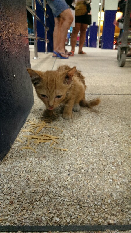 จะเช็คอินกลับกรุงเทพ เจอน้องแมวอายุน่าจะประมาณ 1 เดือนตัวในรูปเลย ผอม มอมแมม หิวโซมาก เดินไปเดินมาหน้าทางเข้าอาคารสนามบินหาดใหญ่ครับ เนื่องจากต้องเข้าไปเช็คอินเลยช่วยได้แค่ฉีกทาโร่ให้น้องเค้าพอแก้หิวครับ
