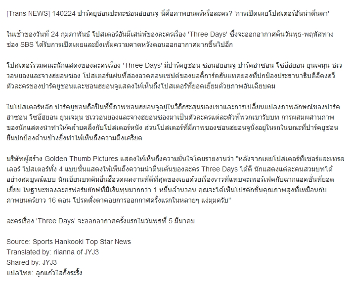และละคร Three Days ของช่อง SBS กันนะคะ