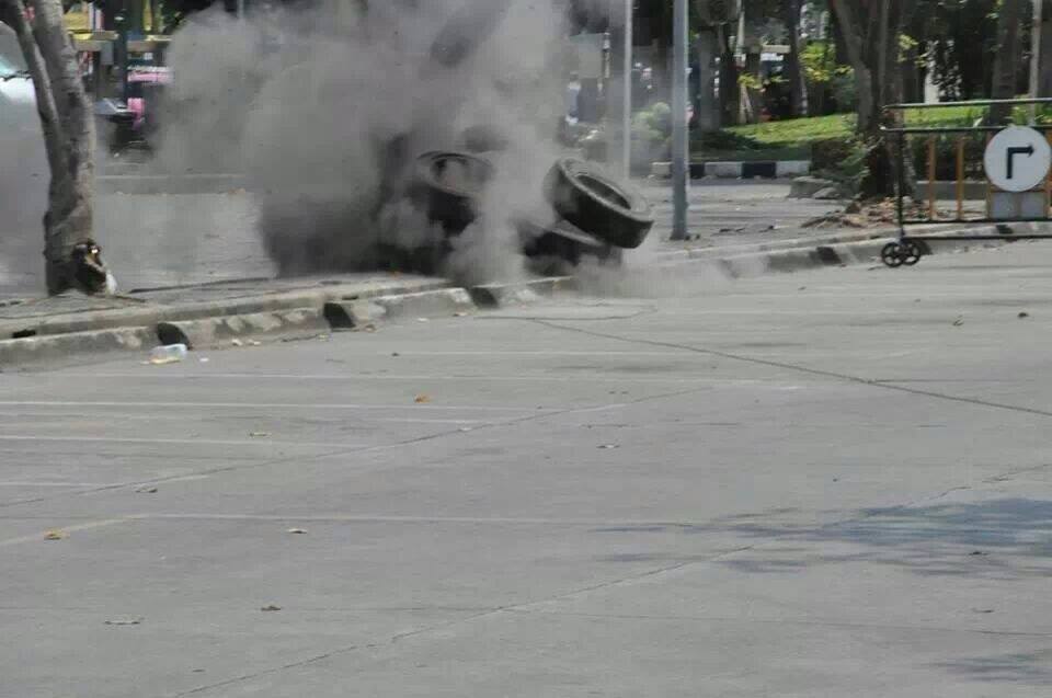 บ่ายวันที่ 23 ก.พที่ผ่านมา ก็เกิดเหตุการณ์คนร้ายลอบยิงระเบิดเอ็ม 79 เข้าใส่ศาลแพ่งทันที แต่โชคดีที่ไม่ระเบิด อาจจะด้วยบารมีพระสยามเทวิธิราชเจ้า หรือระเบิดเอ็ม 79 มาในระยะใกล้เกิดไปจนทำให้แรงตกกระทบไม่เพียงพอให้ระเบิดทำงานได้ก็สุดแล้วแต่ เจ้าหน้าที่ตำรวจพร้อมด้วยหน่วยเก็บกู้ระเบิด และอีโอดี ต้องรีบลงมาเก็บกู้ในทันทีโดยการใช้ยางรถยนต์มาวางรอบระเบิดเอ็ม 79 ที่ตกอยู่ในต้นไม้หน้าศาลแพ่ง พร้อมกับใช้เครื่องยิงวัตถุระเบิดทำลายระเบิด้เอ็ม 79 ลูกดังกล่าว ได้อย่างปลอดภัย