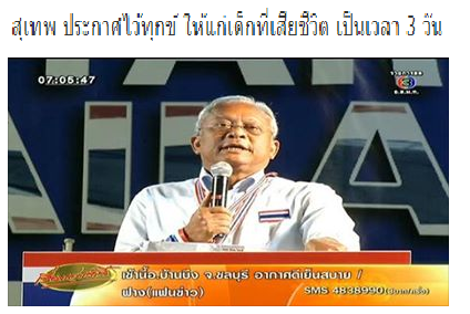 ที่ นายสุเทพ เทือกสุบรรณ ประกาศ..ไว้ทุกข์ให้เด็กที่เสียชีวิตเป็นเวลา 3 วันเสียอีก...