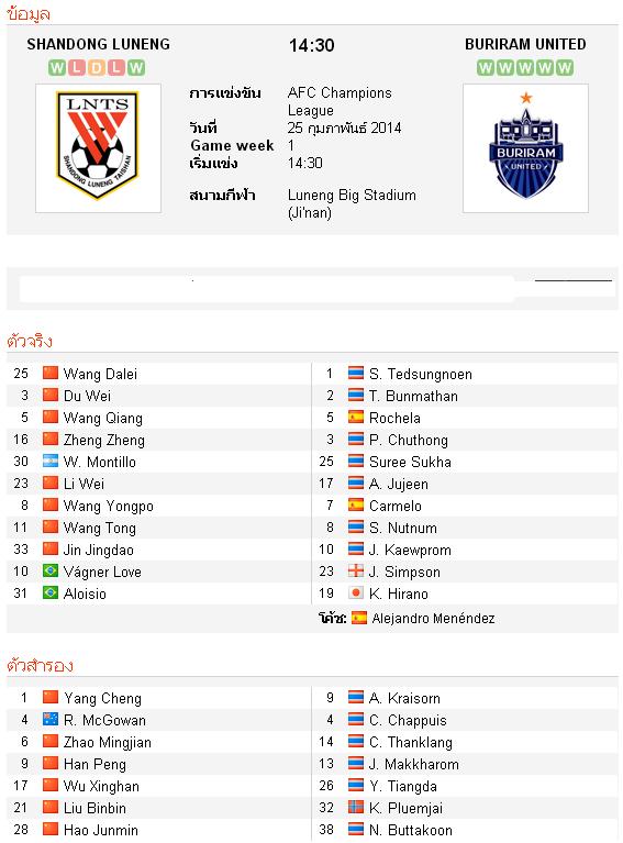 มาลุ้นตัวแทนของไทยกันครับ 14:30 AFC SHANDONG LUNENG VS. BURIRAM UNITED