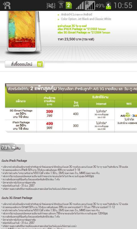 สอบถามแพจเกจซื้อ Note3 พร้อมแพจเกจ Ais