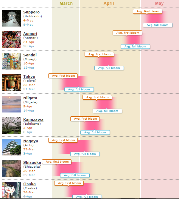 ซากุระจะเริ่มบานจากทางใต้ขึ้นไปทางเหนือ