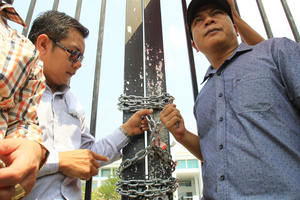 เอามั่ง!!! ชัตดาวน์ ปปช. คล้องโซ่ล็อคกุญแจ ห้ามเข้า จี้ลาออก
