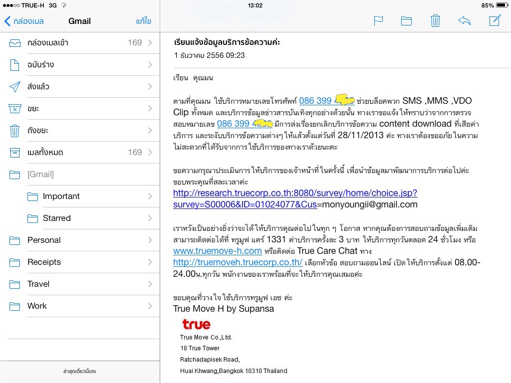 เราเอาเบอร์เก่าให้แม่ใช้ ซึ่งตัวเราเองมีหน้าที่จ่ายค่าโทรศัพท์ให้ โดยหักจากบัตรเครดิต และไม่ได้เช็คใบแจ้งค่าใช้บริการด้วย เพราะมันส่งมาที่บ้านแม่ (ซึ่งเป็นความผิดพลาดของเราเองด้วยที่ไม่เช็คใบแจ้งยอด)