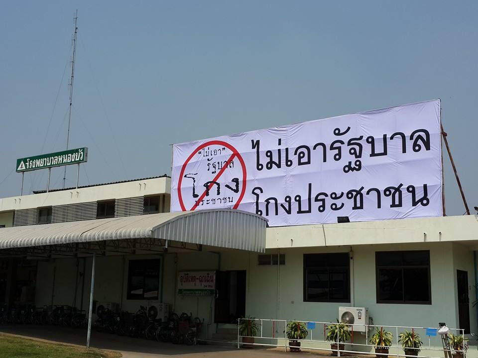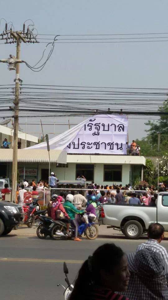 ชาวบ้านรวมตัวกันมาปลดป้าย ขนาดใหญ่(ตามรูป) ซึ่งเดิมเป็นรูปรณรงค์ให้ดื่ม นมแม่