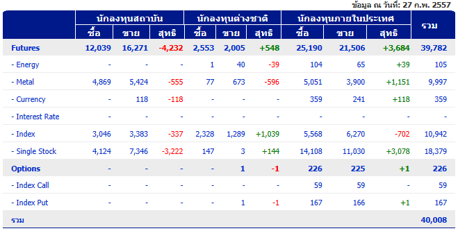 27/2/57 ต่างชาติ Long index future 1,039 สัญญา