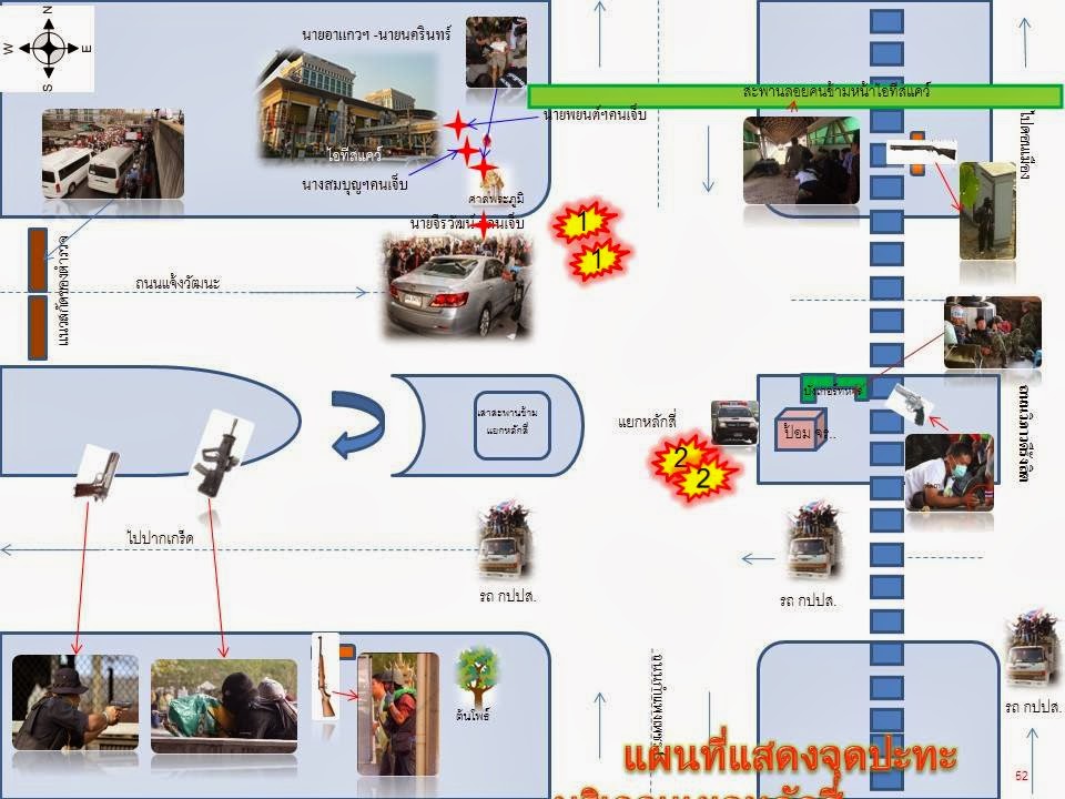 รายงานความคืบหน้าล่าสุดจากตำรวจ ในคดีเหตุปะทะที่หลักสี่ในวันนี้ คดีนี้ทางฝ่ายสืบสวนได้รวบรวมภาพจากกล้องวงจรปิดในที่เกิดเหตุซึ่งเบื้องต้นสามารถกำหนดกลุ่มที่ใช้อาวุธปืนได้ อีกทั้งทาง พล.ต.อ.จรัมพรฯ ได้ทำภาพจำลองตำแหน่งผู้กระทำผิดต่างๆเพื่อประกอบสำนวนการ