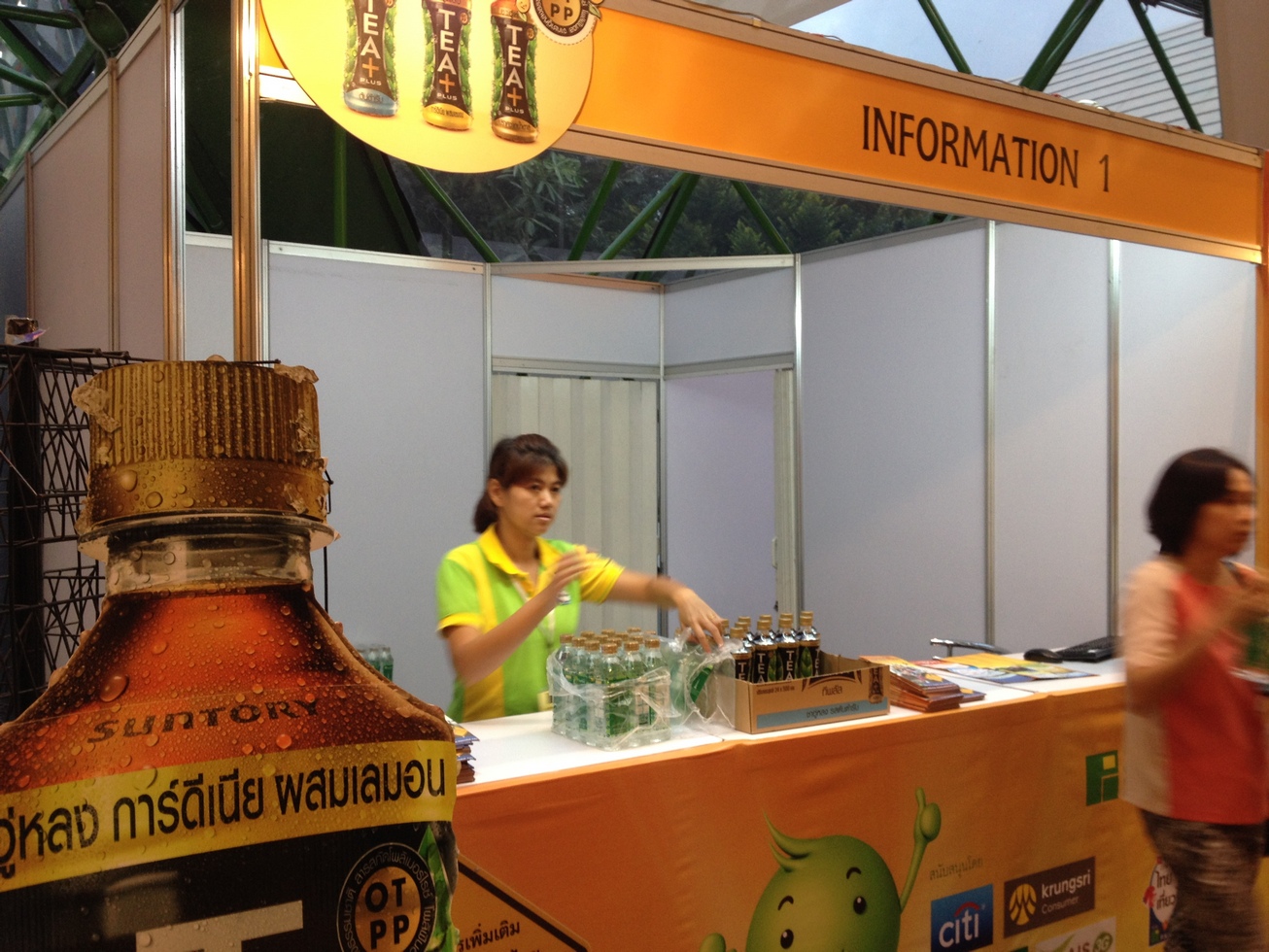 ด้านขวามีแจกชาฟรีสำหรับทุกคนก่อนเข้างาน และโบรชัวแนะนำงาน