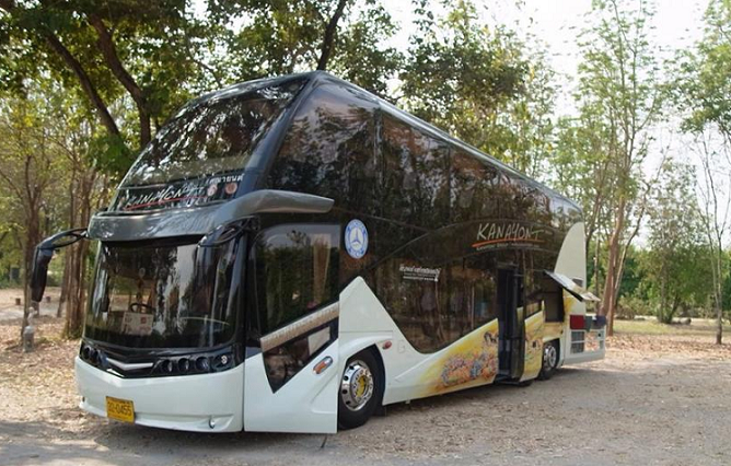 พวกเราเดินทางด้วยรถโค้ชปรับอากาศ VIP 2 ชั้น ของบริษัท Kanayont Best Travel & Service Ltd., Part ภายในรถเพียบพร้อมไปด้วยอุปกรณ์อำนวยความสะดวกครบครันเลยทีเดียว ที่ชอบเป็นพิเศษก็เจ้าเบาะที่นั่งที่เป็นระบบนวดไฟฟ้า อะไรจะสบายขนาดนั้น นั่งไปนั่งมาก็จะหลับ