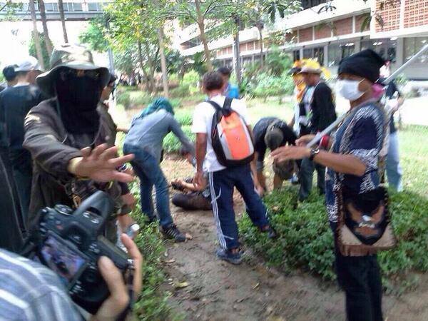 เรื่องของเรื่องมีอยู่ว่า วันที่ 27 กุมภาพันธ์ 2557 เวลา ประมาณ 11.30 น.ขบวนผู้ชุมนุม คปท ได้เคลื่อนขบวน มาปิดกรมชลประทาน สามเสน และสั่งการให้ข้าราชการ กลับบ้านให้หมดภายใน 30 นาที และได้มีการประกาศห้ามถ่ายรูป น้องผู้โชคร้ายคนนี้ พึ่งทราบว่ามีกลุ่มผู้ชุมนุมมาปิดล้อมกรม ก็เลยเดินออกมาดู พร้อมกับใช้โทรศัพท์ถ่ายรูปไว้ การ์ด คปท เห็นก็เลยเดินมาต่อว่า และบอกให้ลบรูปที่ถ่าย น้องเค้าก็กำลังจะลบ แต่คาดว่าคงไม่ทันใจการ์ด คปท พี่แกก็เลยจะแย่งโทรศัพท์มาลบ แถมด่าให้อีกต่างหาก ยื้อกันไปมา พวก การ์ดใจร้อนเลยซัดเปรี้ยงเข้าให้ หลังจากนั้น ก็ 10 คน รุม หนึ่งคน ครับ น้องสะบักสะบอมเอาการ หลังจากเกิดเหตุ