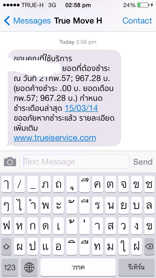 True Move H ครับ ส่งข้อความมาบ่อยนะครับทวงค่าบริการรายเดือนเนี่ย