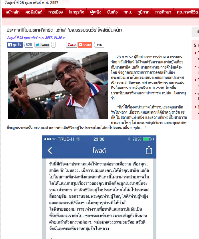 ดูข่าว.สาธิต เซกัล สัญชาติอินเดีย จะฟ้องอดีตนายกยิ่งลักษณ์..เมพมากอ่า 555