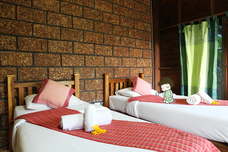 ห้องที่นี่ถึงแม้จะเป็นกำแพงอิฐแต่ก็ยังคงความเป็นธรรมชาติได้อย่างลงตัว ด้วยอิฐสีน้ำตาลขรุขระแบบคลาสสิค วิวห้องมองออกไปเป็นป่า เป็นเขา มองแล้วเพลินตาดีฝุดๆค่ะ พูดเลย ชอบบบบบบบบ