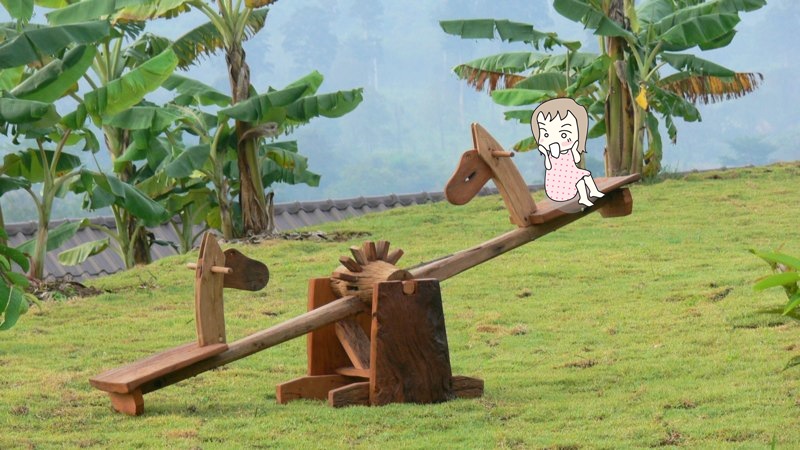 พอกินอิ่มก็ขอเดินย่อย ชมวิว ตากน้ำค้างไปพลางๆก่อนกลับเข้าห้องพัก ก็ไปเจอนี่เข้า!!!! ไม่แน่ใจว่าเค้าเรียกว่าอะไร เอาเป็นว่าหญิงเรียกว่า ไม้กระดานกระดกล่ะกัน อิอิ ถือว่าย้อนวัยท่ามกลางสายหมอกที่เริ่มทยอยลอยกันมา