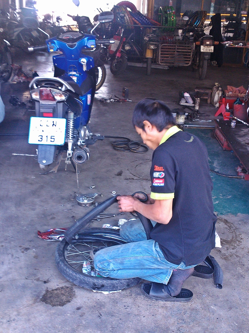 เลยเดินหอบสัมภาระหลายกระเป๋า พากันเข็นรถไปไกลกว่าจะเจอร้านซ่อม..ค่อยยังชั่ว