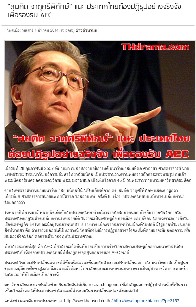 รายการ The Great Seminar โดย ดร.สมคิด จาตุศรีพิทักษ์ หัวข้อ " เดินหน้าปฏิรูปประเทศไทย :) http://www.youtube.com/watch?v=po9EgOsB9iA