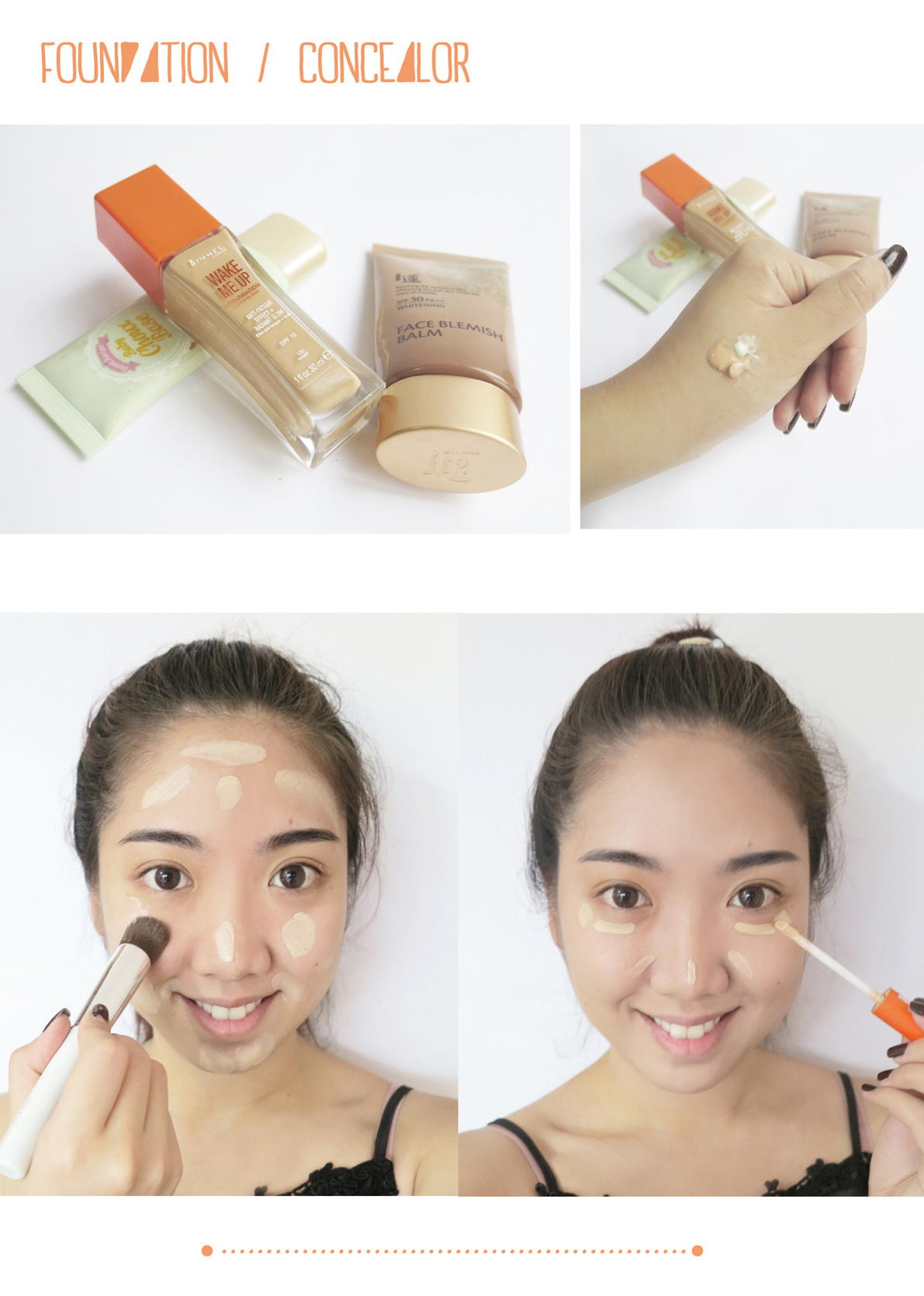 หลังจากนั้น ลี่ผสม base / รองพื้น / BB cream เข้าด้วยกัน สำหรับลุคนี้ ลี่อยากให้ผิวดูโกลว์นิดๆไม่หนามากแต่ยังสามารถปกปิดรอยแดงหรือร่องรูขุมขนได้อยู่ เกลี่ยให้ทั้วด้วยแปรงจะทำให้รองพื้นดูเบาๆมากขึ้น ลี่ว่าถ้าใช้ฟองน้ำอาจจะทำให้หน้าแน่นไปนิดนึงสำหรับลุคนี้ค่ะ เราสาารถบกปิดริ้วรอยได้เพิ่มโดยการลง concealor ครั้งนี้ลี่ใช้แบบน้ำค่ะแล้วก็ใช้นิ้วกดตรงบริเวณที่อยากปกปิดเพิ่มเติม แล้วใช้แป้งแข็งกดทับเล็กน้อยค่ะ
