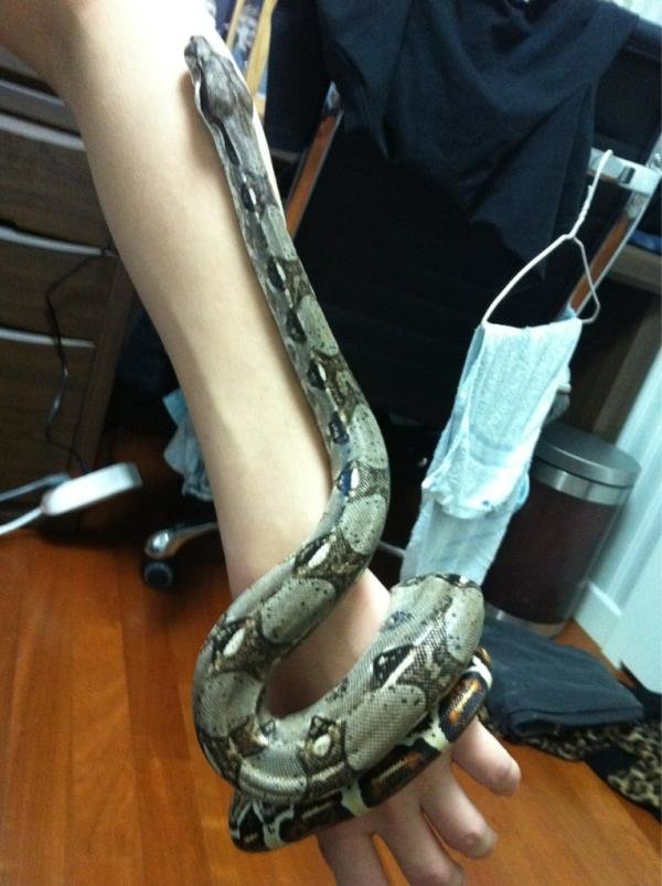 งูตัวนี้เป็นสัตว์เลี้ยงของศิลปินเกาหลีคนนึงน่ะค่ะ(มีร์Mblaq) พอดีเราเห็นในรายการแล้วเค้าบอกว่างูพันธุ์นี้ชอบอุณหภูมิร่างกายคน