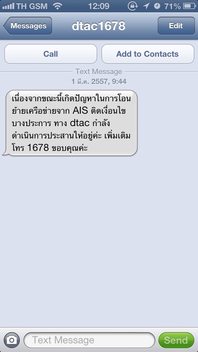 เมื่อเช้า DTAC ส่งข้อความมาอันแรกก็เข้าใจว่าทางนั้นไม่ยอมตัดสัญญาณ