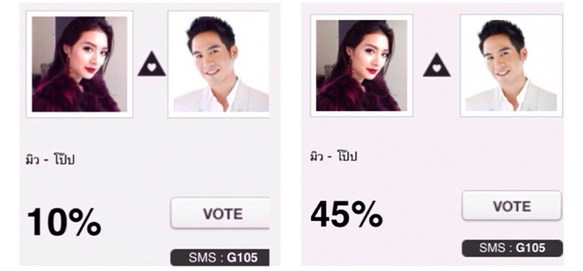จากวันที่เริ่มโหวต บิ๊วกันกระจาย คะแนนค่อยๆขึ้น วันละเปอเซนต์ ลดวันละหลายๆเปอเซนต์