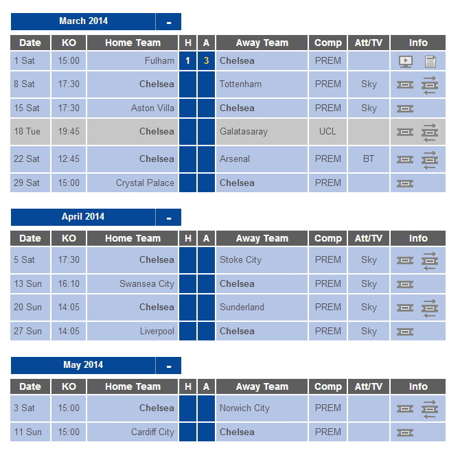 โปรแกรม EPL - 10 นัดสุดท้าย ของ เชลซี